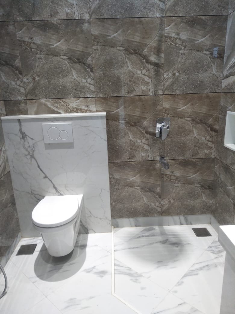 We installed Thermostatic Divertors,Bathtubs,Beautiful marble finish & tiles matching their bathroom theme enhancing the bathroom look.