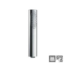 It is a oval shape hand shower it is branded piece of jaquar its body is so light and strong so we move it easily .