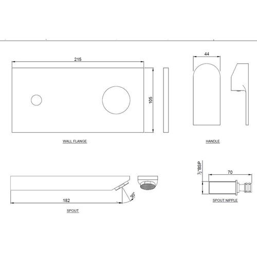 Exposed Part Kit of Single Lever Basin Mixer Wall Mounted Consisting of Operating Lever, Wall Flange, Nipple & Spout (Suitable for Item ALD-233)