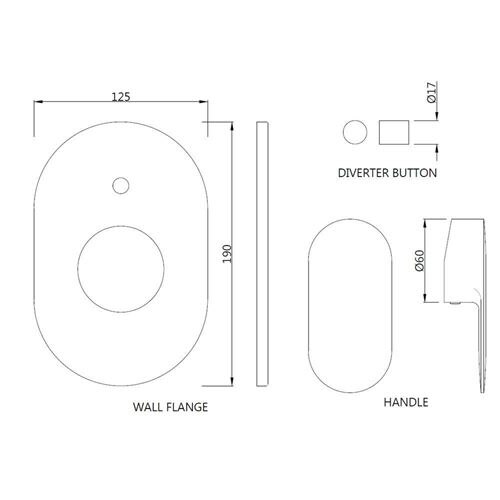 Single Lever Exposed Part Kit of Hi-Flow Diverter Consisting of Operating Lever, Wall Flange (with Seals) & Button Only (Suitable For Item ALD-079)