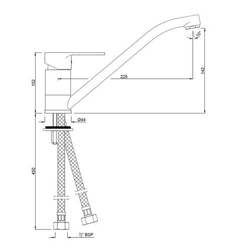 Single Lever Sink Mixer with Swinging Spout (Table Mounted) with 450mm Long Braided Hoses